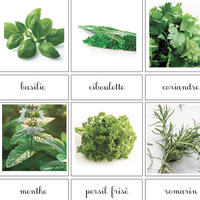 Vous pourrez utiliser cette nomenclature comme il vous plaira, comme par exemple pour jouer à faire des devinettes sur les herbes aromatiques en lisant les descriptifs !